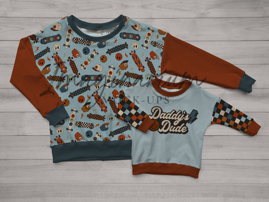 Adult and child Long Sleeve Dolman Sweater Mock Up, Realistic Clothing Mockup for Photoshop and Procreate
