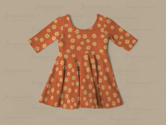 Gus & Steel Three Quarter Sleeve Twirl Dress Mock Up, Realistic Clothing Mockup for Photoshop and Procreate