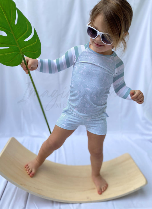 Rash Guard Swimsuit Top and Reversible Bottoms Outfit Mock Up, Realistic Clothing Mockup for Photoshop and Procreate