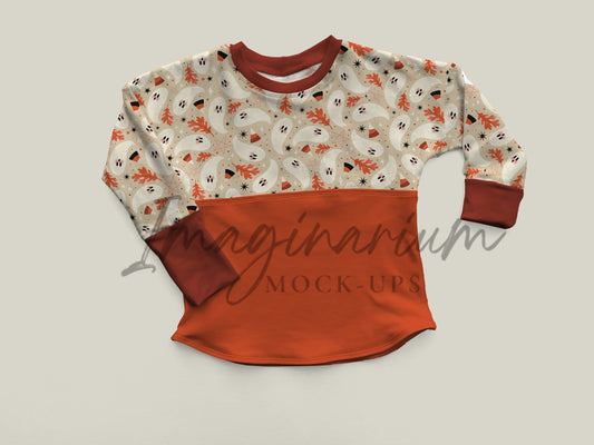Long Sleeve Color Block Sweater Mock Up, Tamarack Top, Realistic Clothing Mockup for Photoshop and Procreate