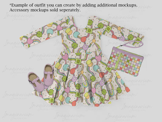 Long Sleeve Circle Skirt Brielle Dress Mock Up, Realistic Clothing Mockup for Photoshop and Procreate