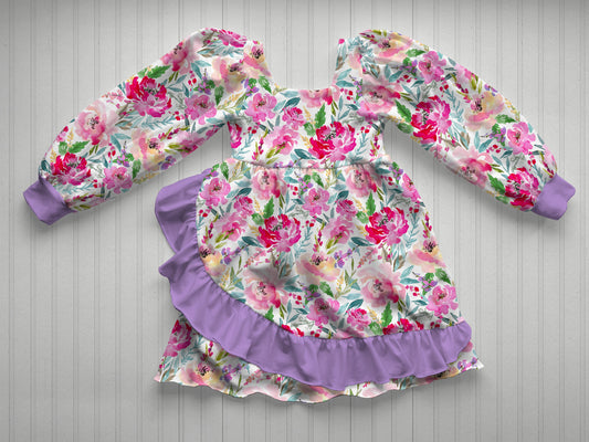 Petal Dress Mock Up, Gathered Long Sleeve Dress Mock-Up, Ruffle Skirt Dress, Procreate Customizable Mock-up, Realistic Photoshop mockup