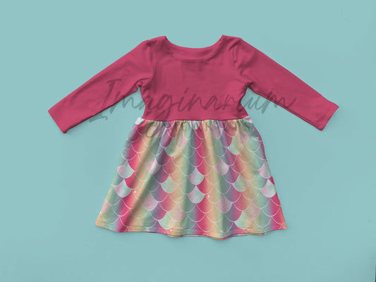 Long Sleeve Drop Waist Aubrey Dress Mock Up, Realistic Clothing Mockup for Photoshop and Procreate