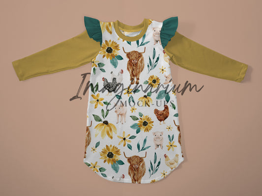 Long Sleeve Flutter Sweatshirt Dress Mockup, Realistic Clothing Mock Up for Photoshop and Procreate