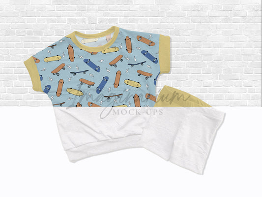 Track Shorts and Ringer Tee Outfit Mock Up, Realistic Clothing Mockup for Photoshop and Procreate