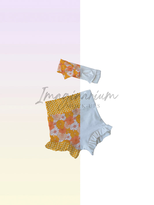 Ruffle Bummie and Wrap Bow Mock Up, Realistic Clothing Mockup for Photoshop and Procreate