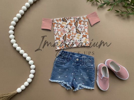 Short Sleeve Dolman Shirt and Bike Shorts Outfit Mock Up, Realistic Clothing Mockup for Photoshop and Procreate